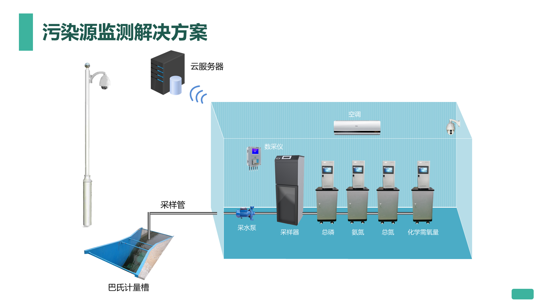 水质在线监测,针对各种河道、湖泊、江水、农村污水、工厂排放污水、雨水等实行在线实时监测,数据直接上传当地环保局,监测参数包括:COD化学需氧量、NH3-N氨氮、TP总磷、TN总氮、TOC总有机碳、PH值、SS悬浮物含量、流量等。