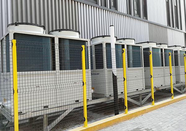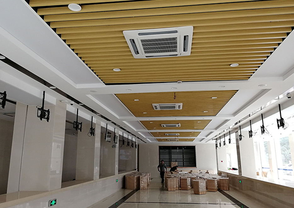相对小型的餐馆或办公室或娱乐场所等,一般采用VRV多联机中央空调系统+中小型新风换气机组。VRV多联机,由一台室外主机通过铜管(气管和液管)及分支管连接多个室内机末端,并由室内机风机和换热盘管循环送回风处理,以达到室内空气温度调节的目的;空调冷媒为氟利昂或新型环保制冷剂,室外机组采用风冷热泵形式、室内机为冷媒盘管或新风吊柜机或嵌入式四面出风吊顶机;整套系统可以统一设定温度,也可以各个室内机用遥控器独立控制。新风系统一般采用双向流热回收新风换气机,送风直达各室内机盘管出口位置,回风一般选择在走廊或卫生间位置,新风和排风口设置在外墙。