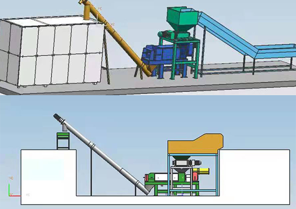 对于不需要制肥的场合,只需要达到减量化和无害化处理的,流程一般为:尾菜垃圾——螺旋提升——撕碎压榨机——螺旋提升——出料到料桶或垃圾运输专用车车斗。